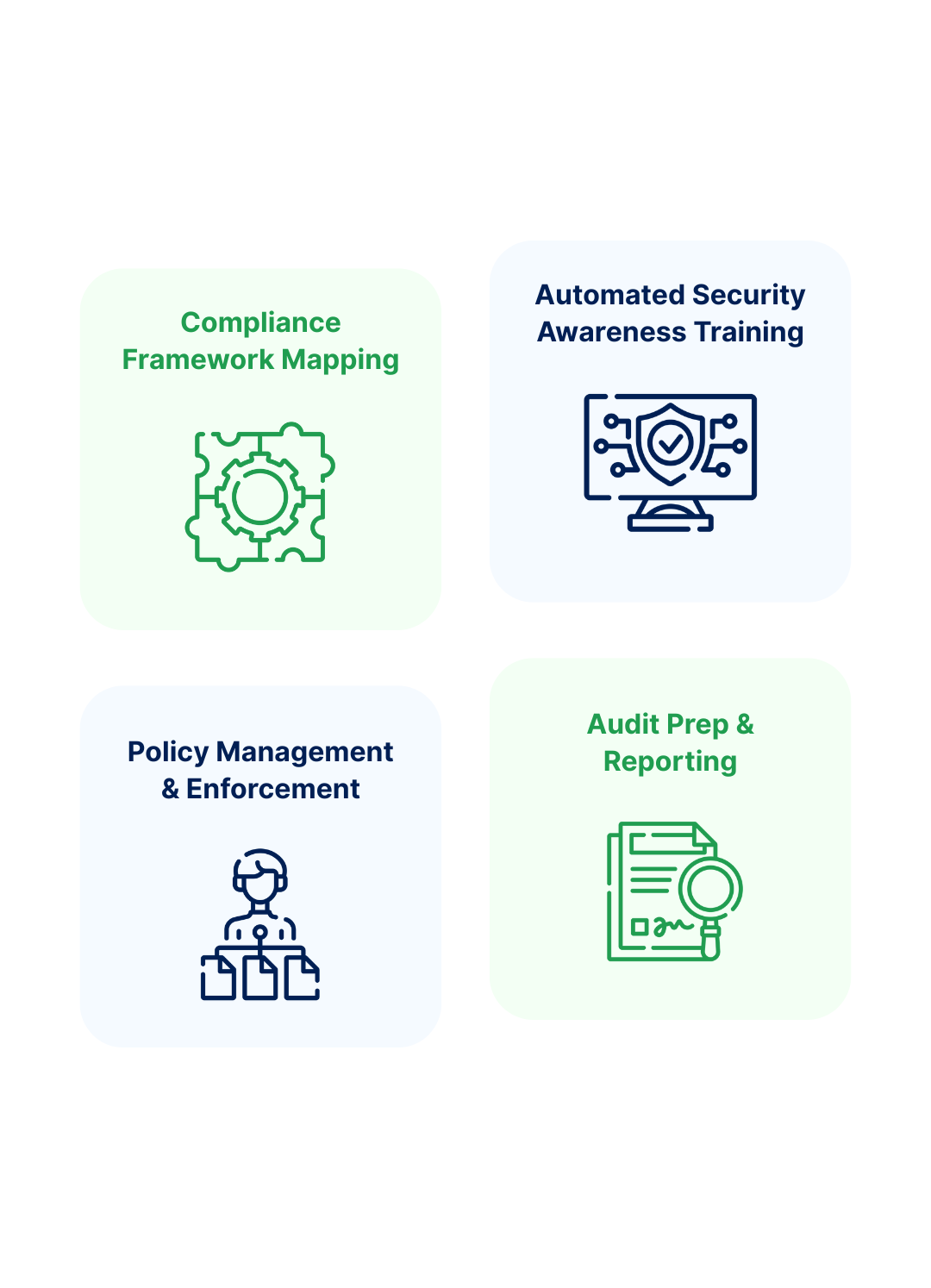 Vi tilbyr også engasjerende og automatisert opplæring i cybersikkerhet, slik at teamet ditt er trygt, informert og revisjonsklart.